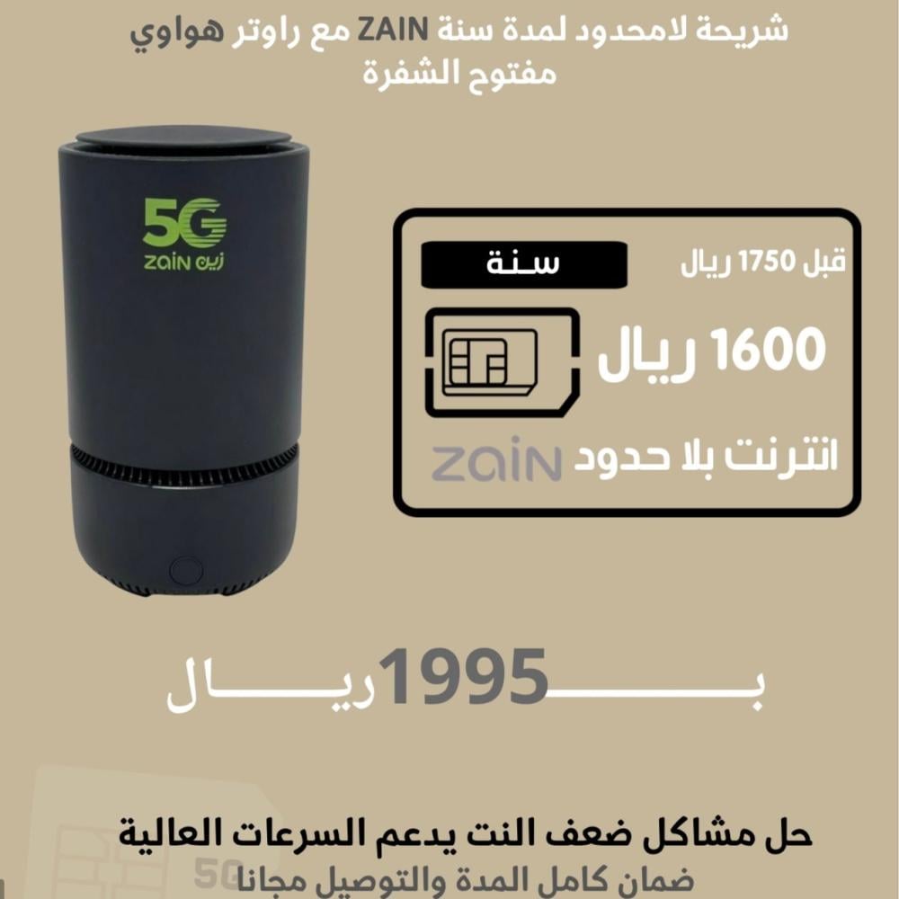 شريحة زين مفتوحة لمدة سنة + راوتر هواوي مفتوح الشفرة